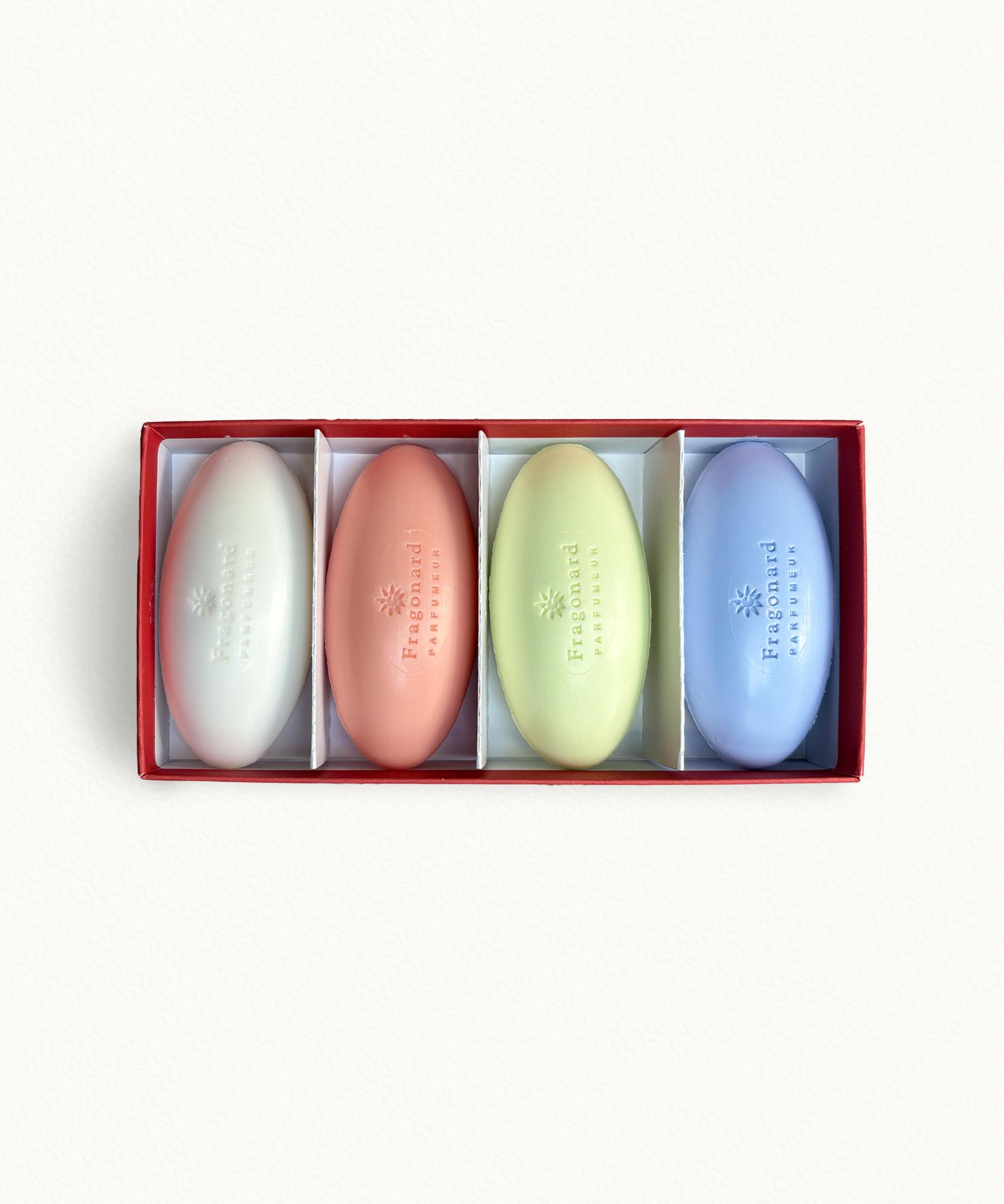 Το Σετ Σαπουνιών 4 Τεμαχίων(4 x 50g), μια επιλογή από έντονα αρώματα που συνδυάζουν Παιωνια , Πασχαλιά , Βερβένα και Σύκο .